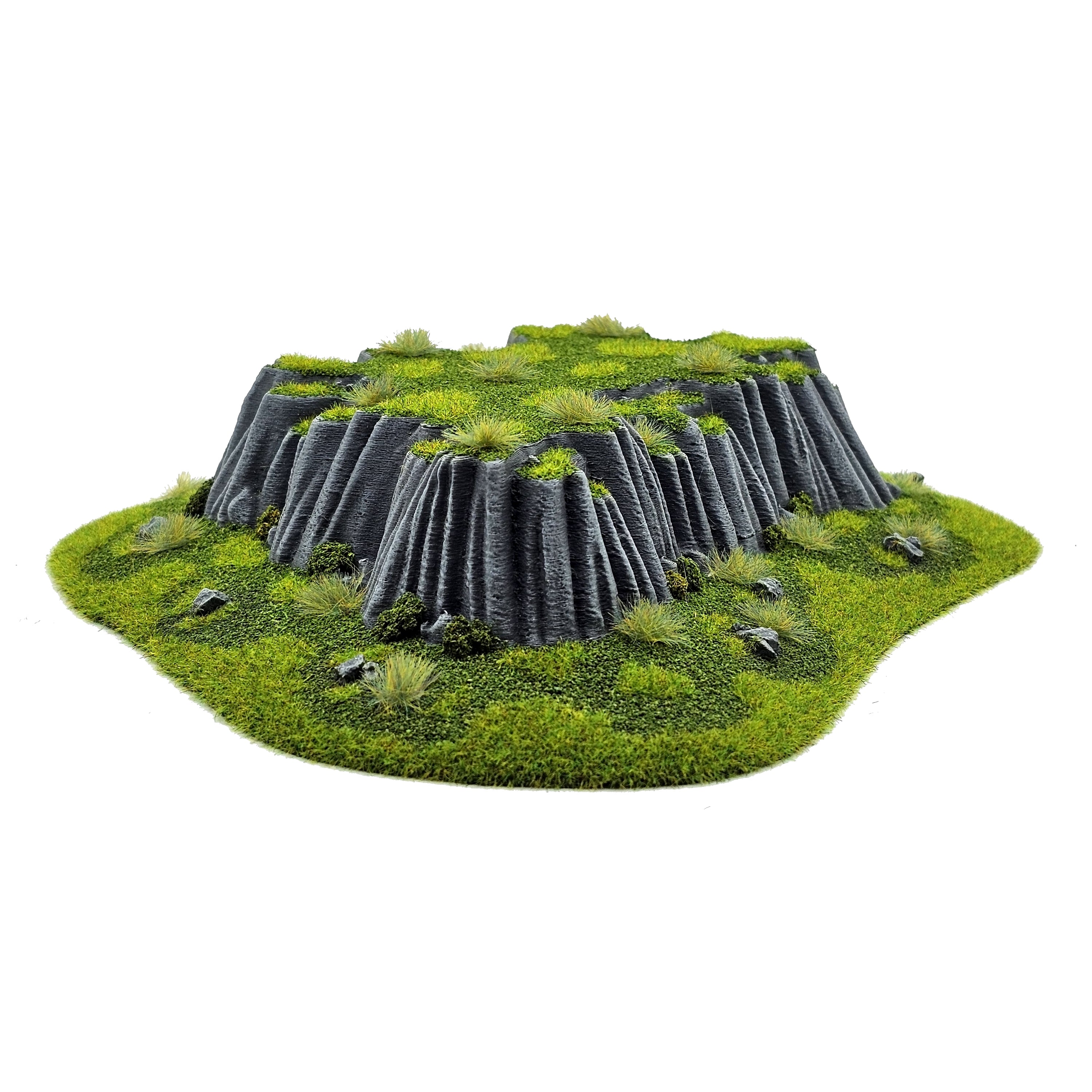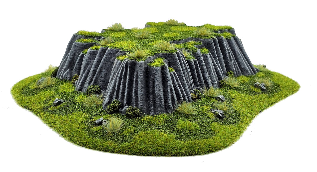 A collection of wide, flat-topped rocky hills designed to Designed to add height, narrative depth, and strategic variation to your wargaming.